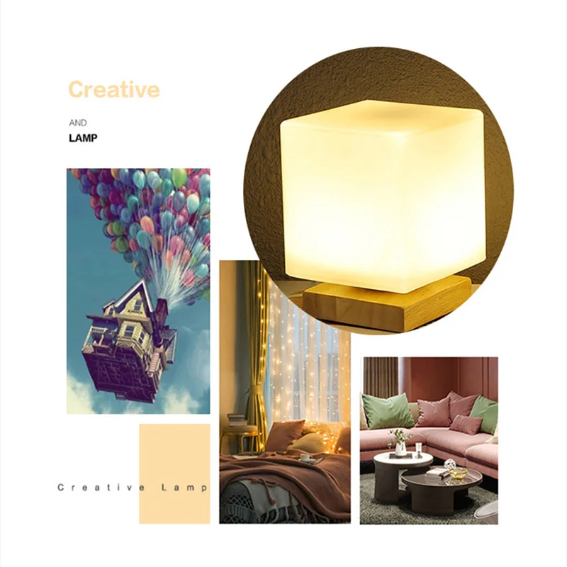 Креативный светодиодный светильник из цельной древесины, стеклянный Настольный декоративный светильник с питанием от USB, Ночной светильник в скандинавском стиле для украшения спальни