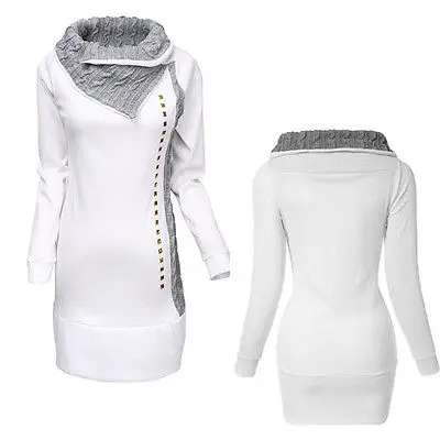 Женский Повседневный пуловер с длинным рукавом, белый свитер с высоким воротником и капюшоном, Осень-зима