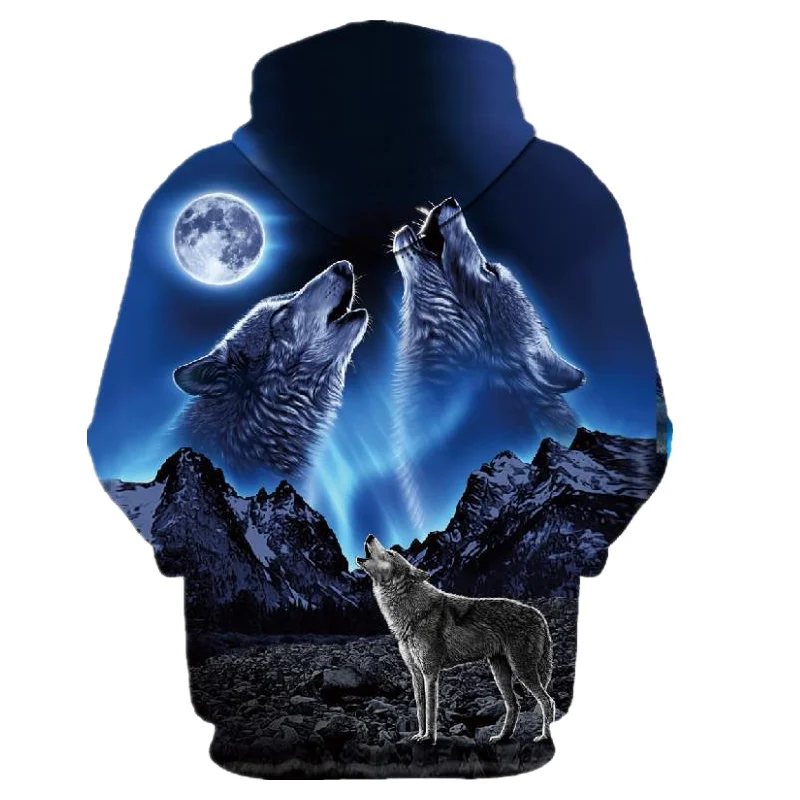 Толстовка мужская с капюшоном, Модный свитшот с 3D принтом волка, повседневная одежда, пуловер, худи в стиле Харадзюку, весна-осень