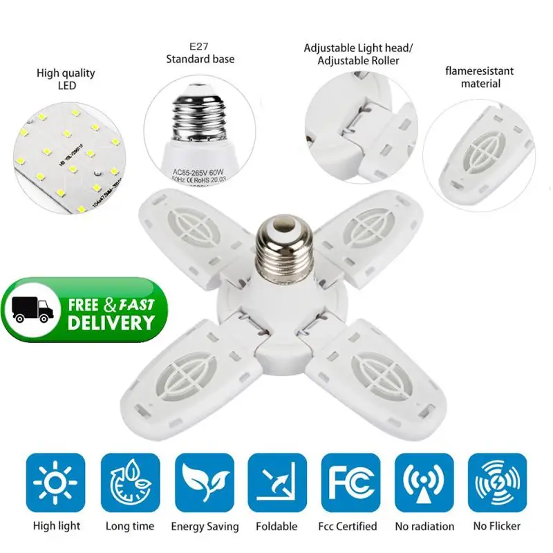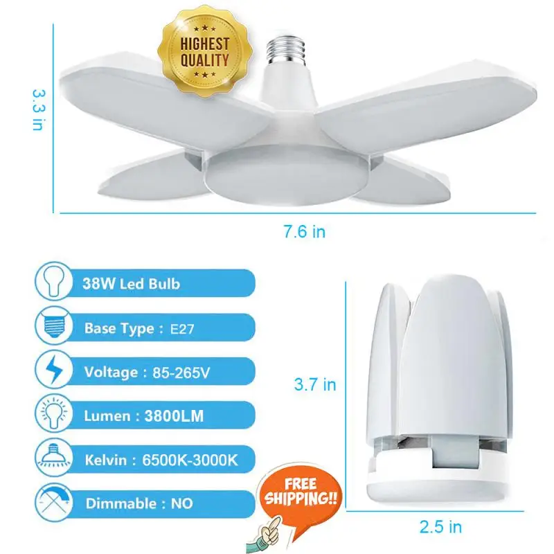 Супер ярсветодиодный ные лампы 38 Вт, промышленное светильник щение, E27, светодиодное освещение для гаража, деформируемая Складная Лампа для мастерской, гаража, дома