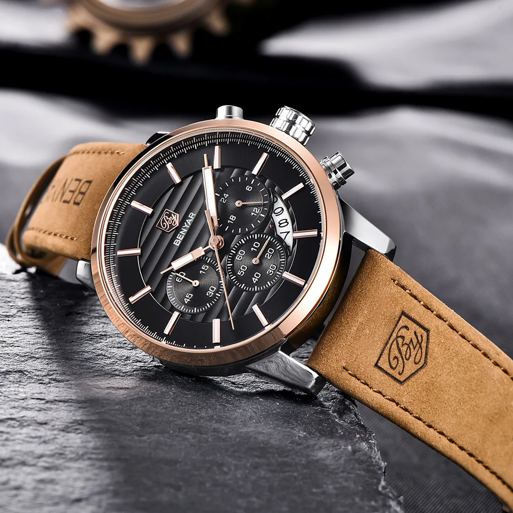 Часы BENYAR Мужские кварцевые, люксовые модные повседневные наручные, в стиле милитари