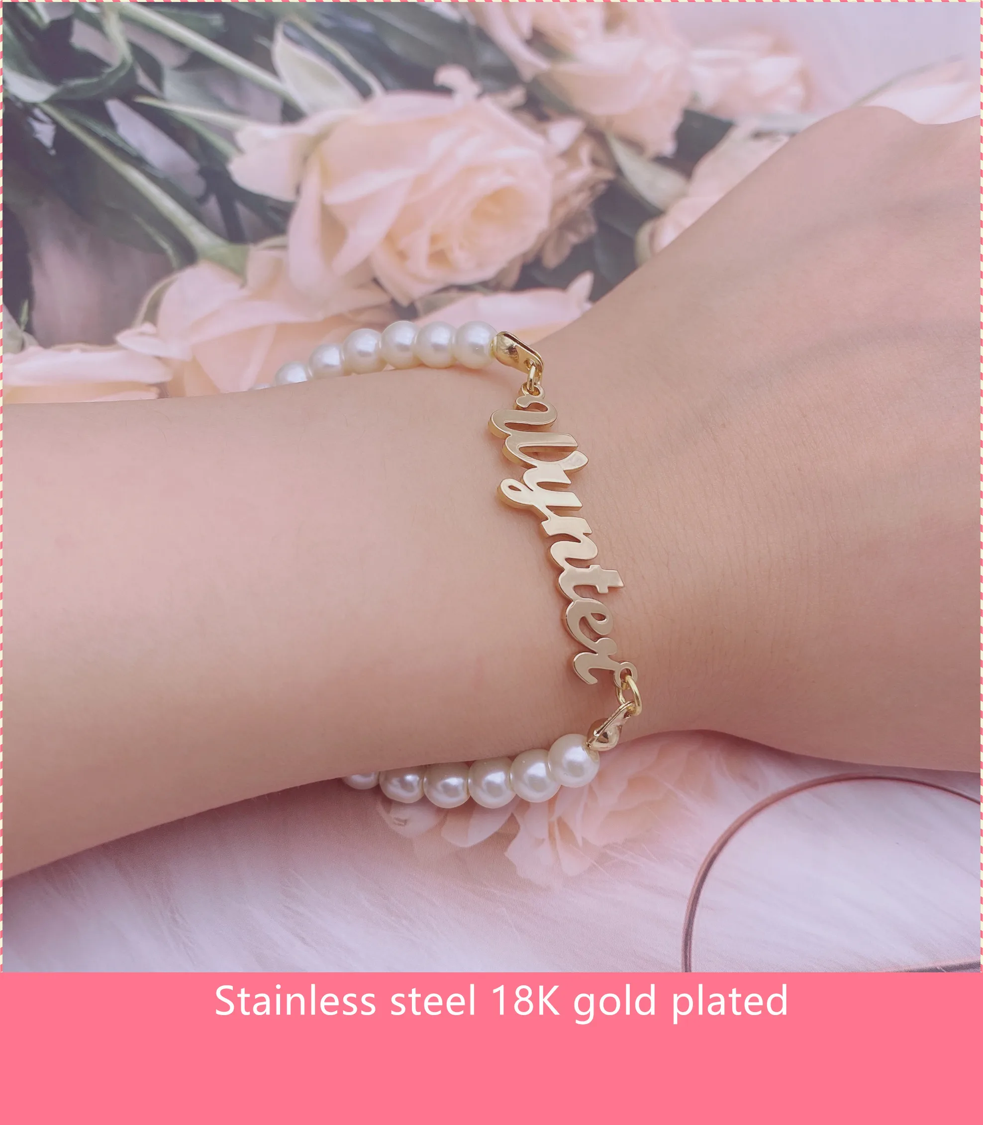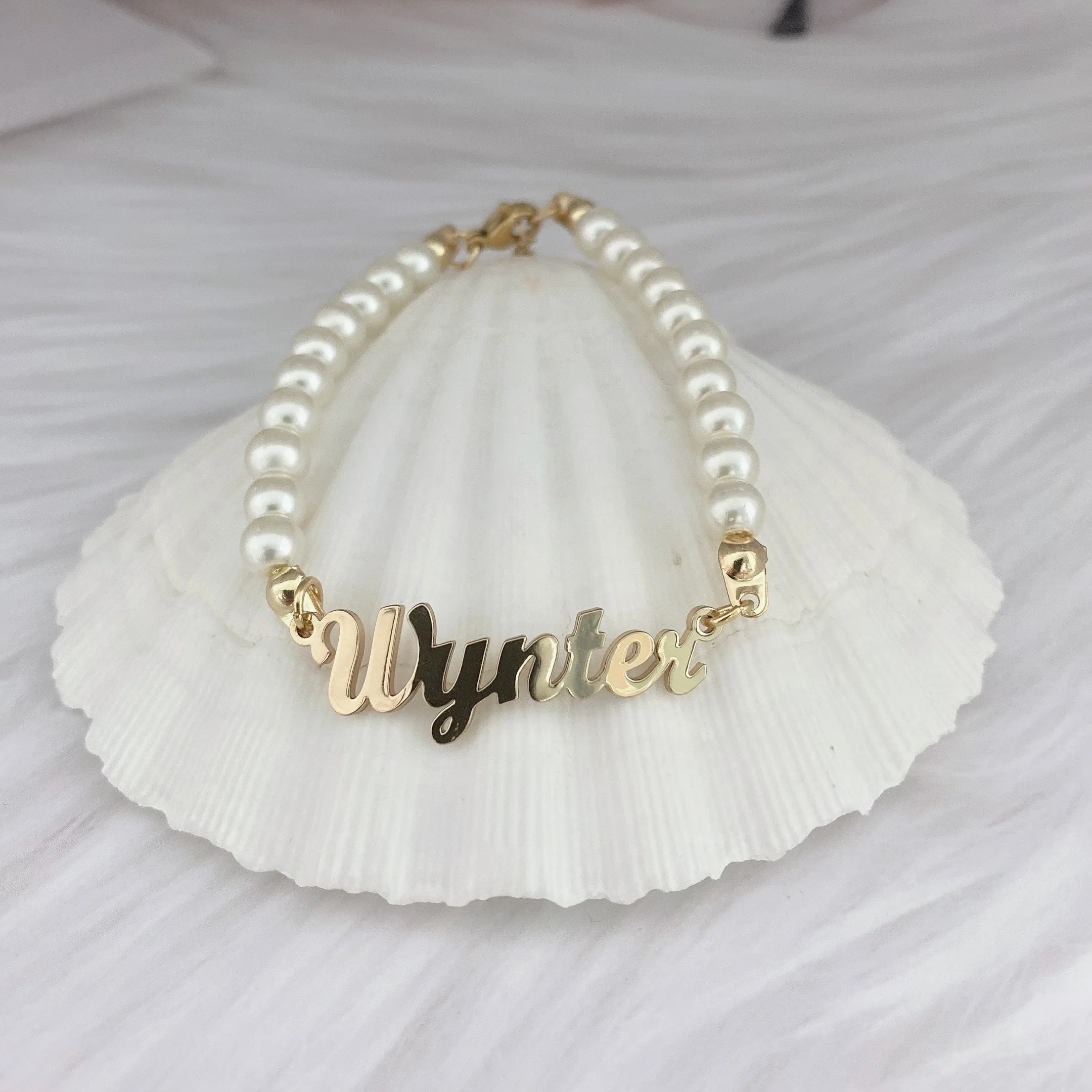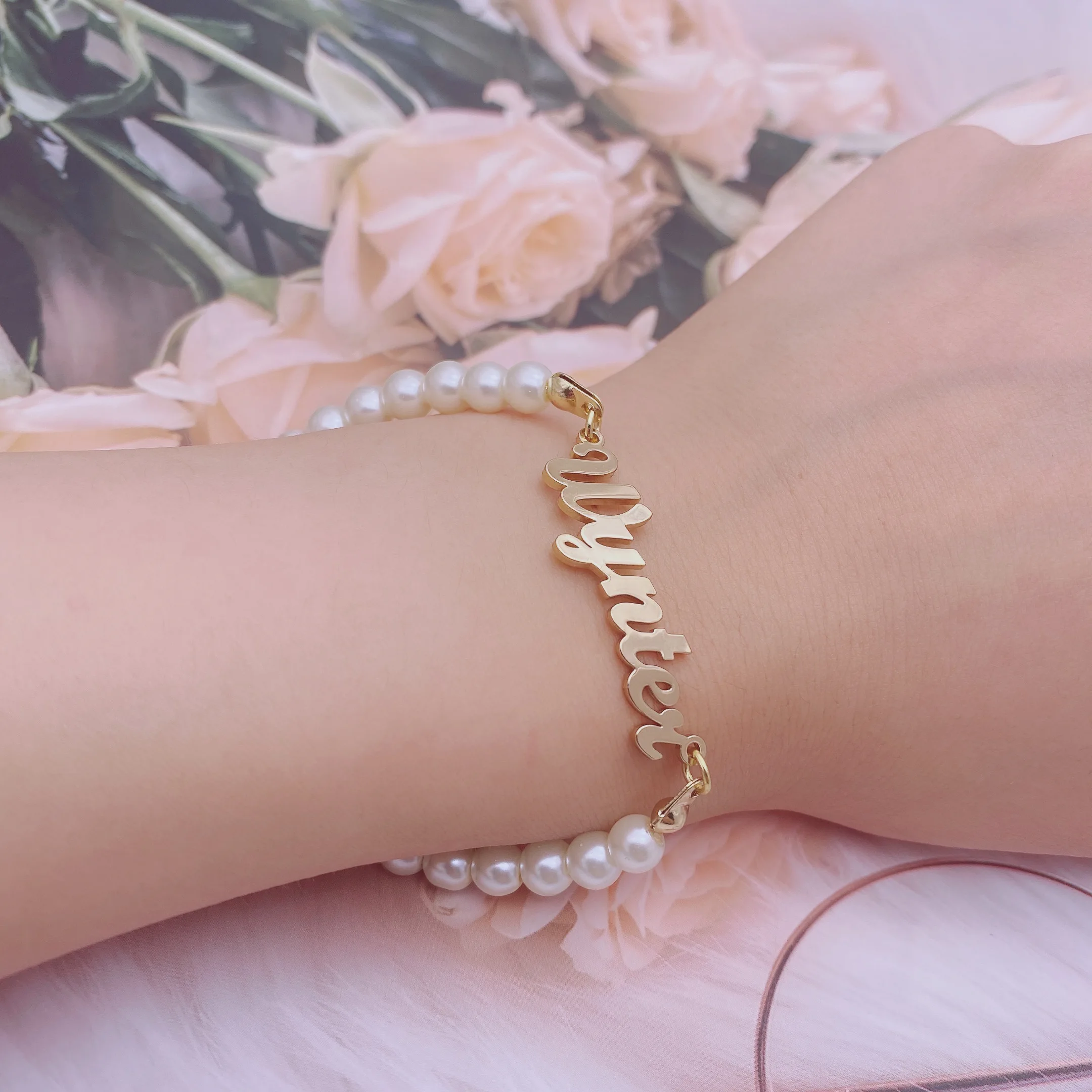 Жемчужные браслеты с именем на заказ, браслет с именем, цепочка из ...