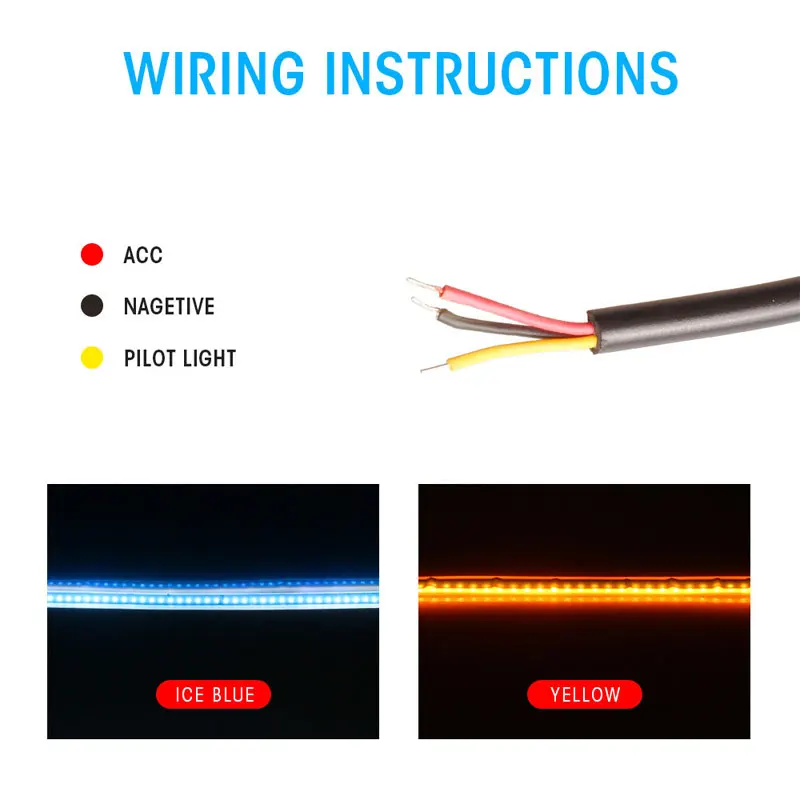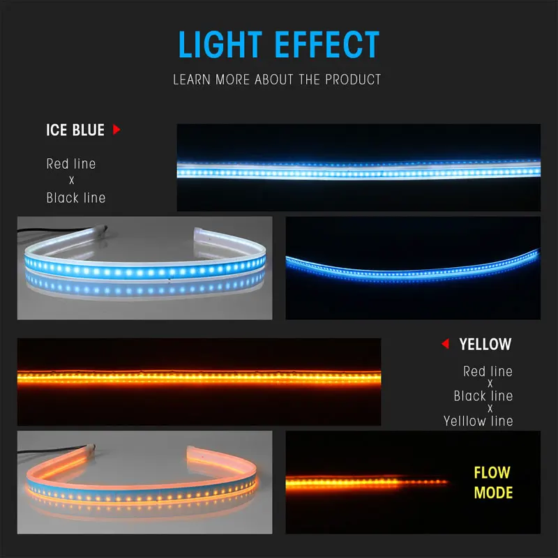 Технические характеристики:Абсолютно новый и высококачественный.Название продукта: направляющая Светодиодная лентаМощность: 12 ВтНапряжение: DC12VМатериал: диоксид кремния гельКачество светодиодов: 150 светодиодовСВЕТОДИОДНЫЕ Чипы: 2835SMDСветодиодный Размер: 30 см/45 см/60 смЦвет света: белый-желтый, синий-желтый (желтый при повороте)Простой дизайн для вас красивый, экзотический и романтический интерьер.Двухсторонний клейкий кран доступен для установки.Его можно использовать в абажуре фар. Описание:Высокое качество светодиодные полосы света, водонепроницаемый, анти-столкновения, анти-коррозии.Обратите внимание: