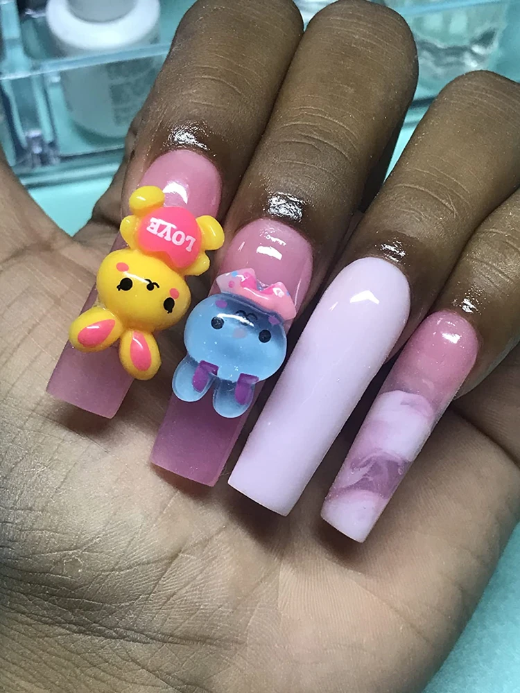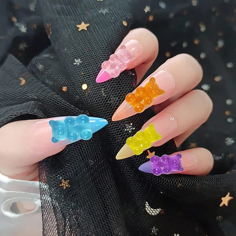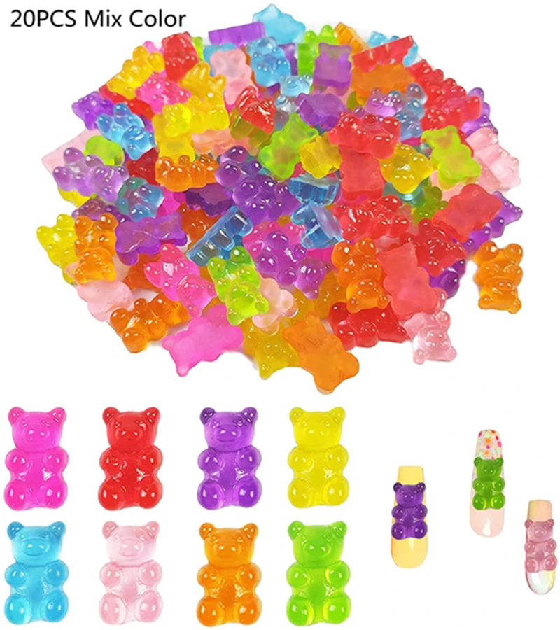Милые аксессуары, роскошный слайм для ногтей, искусственный цветок, медведь, 3D фотоэлемент для маникюра