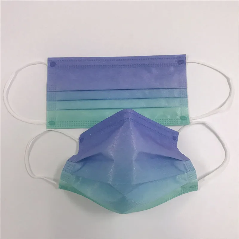 Маска одноразовая с принтом для взрослых, трехслойная дышащая Защитная, выдунное из расплава полотно градиентных цветов, для мужчин и женщин