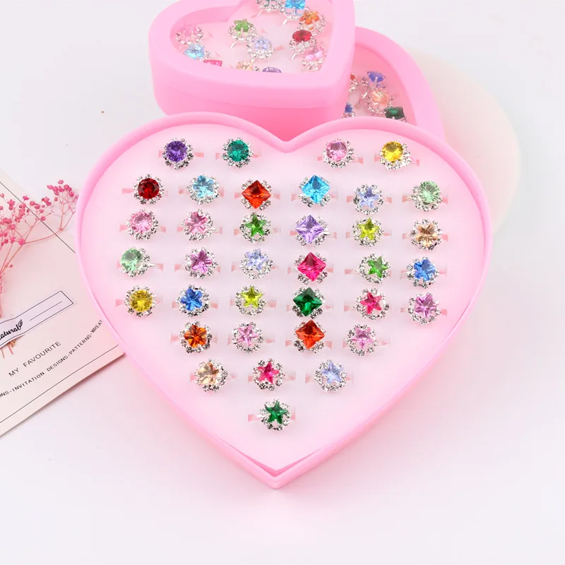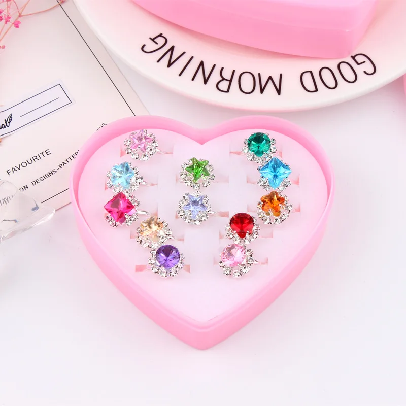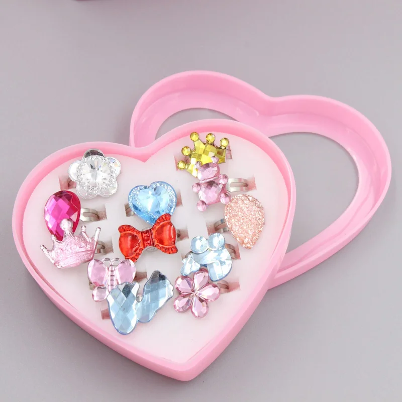 Регулируемые кольца Стразы, сувениры принцессы для вечеринки, детские акриловые кольца для девочек, аксессуары, красивые игрушки, прекрасный розовый подарок в форме сердца