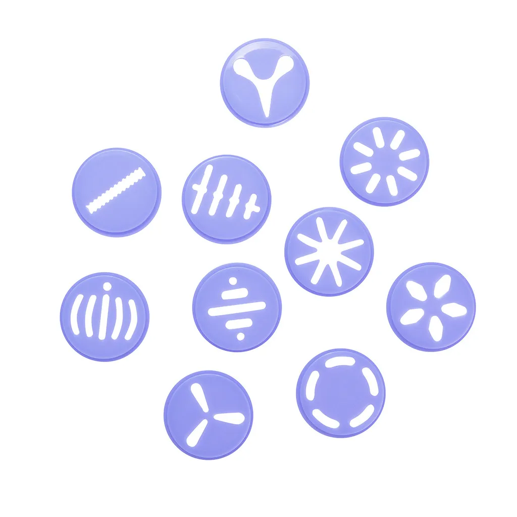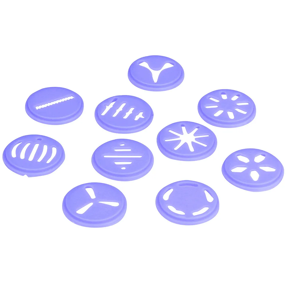Включает в себя 3 части: пресс-машина для печенья; 10 различных цветочных узоров; 8 различных установленных цветочных полос