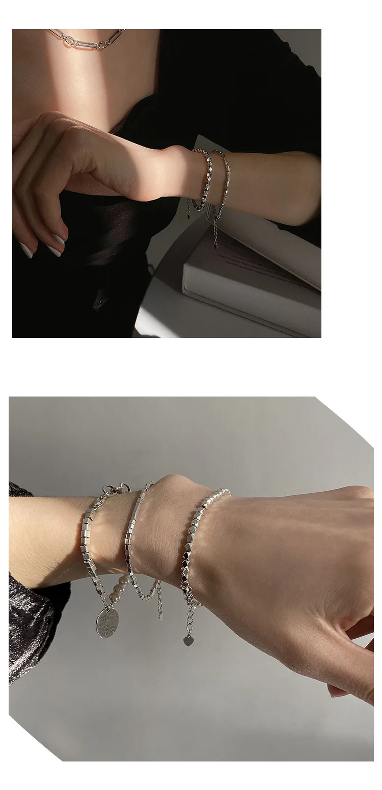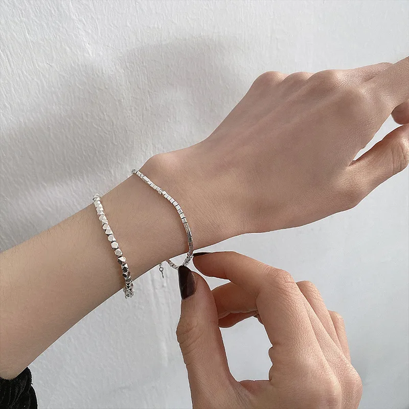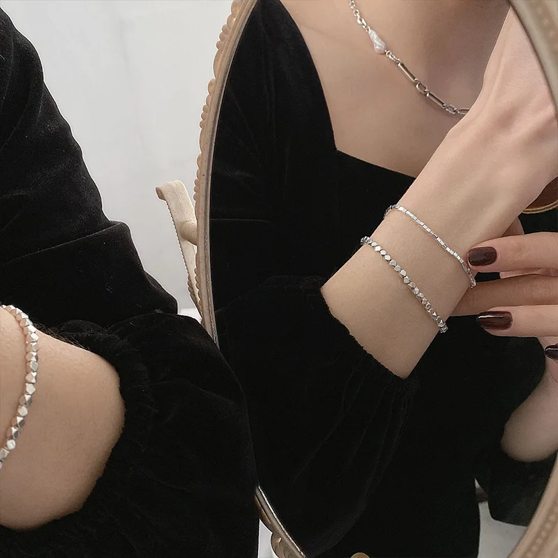 Минимализм LIVVY, серебряный цвет, многоугольные бусины, цепочка-браслет, женская мода, креативные классические ювелирные изделия ручной работы, аксессуары
