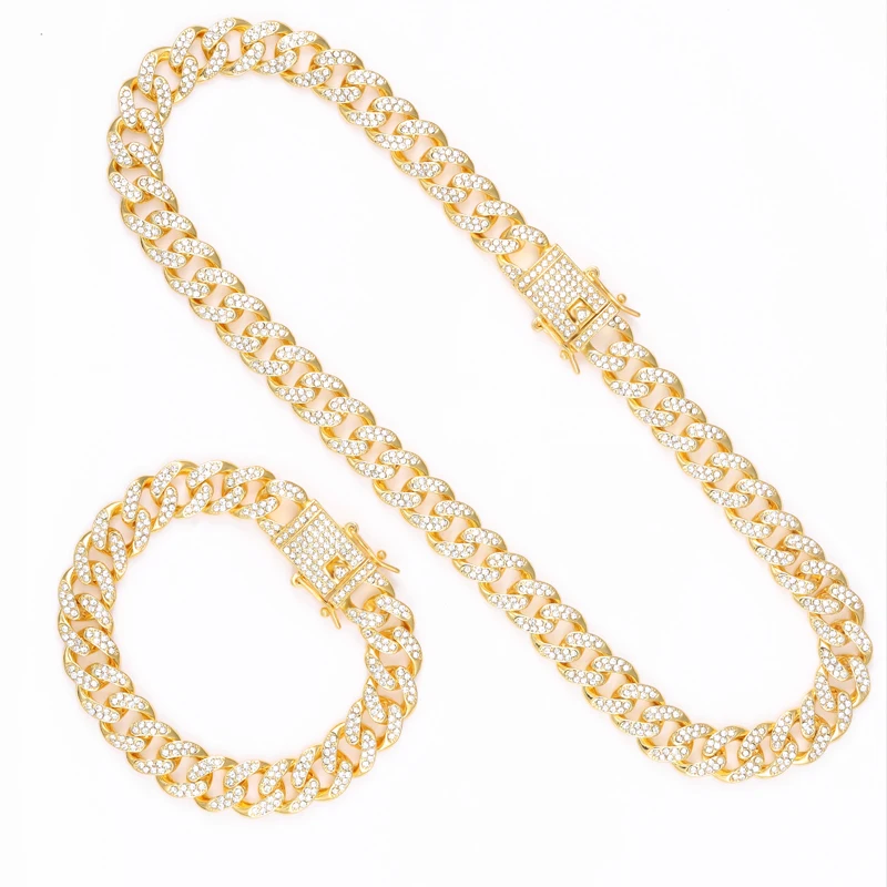 13 мм кубинское ожерелье со льдом, цепочка в стиле хип-хоп, Ювелирное колье, золотые, серебряные стразы, CZ застежка для мужчин, модные ожерелья, звено