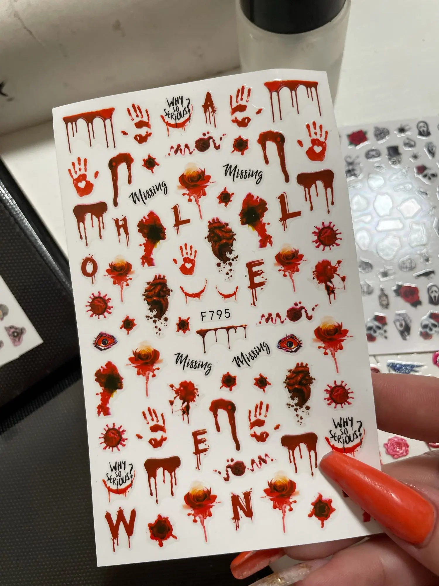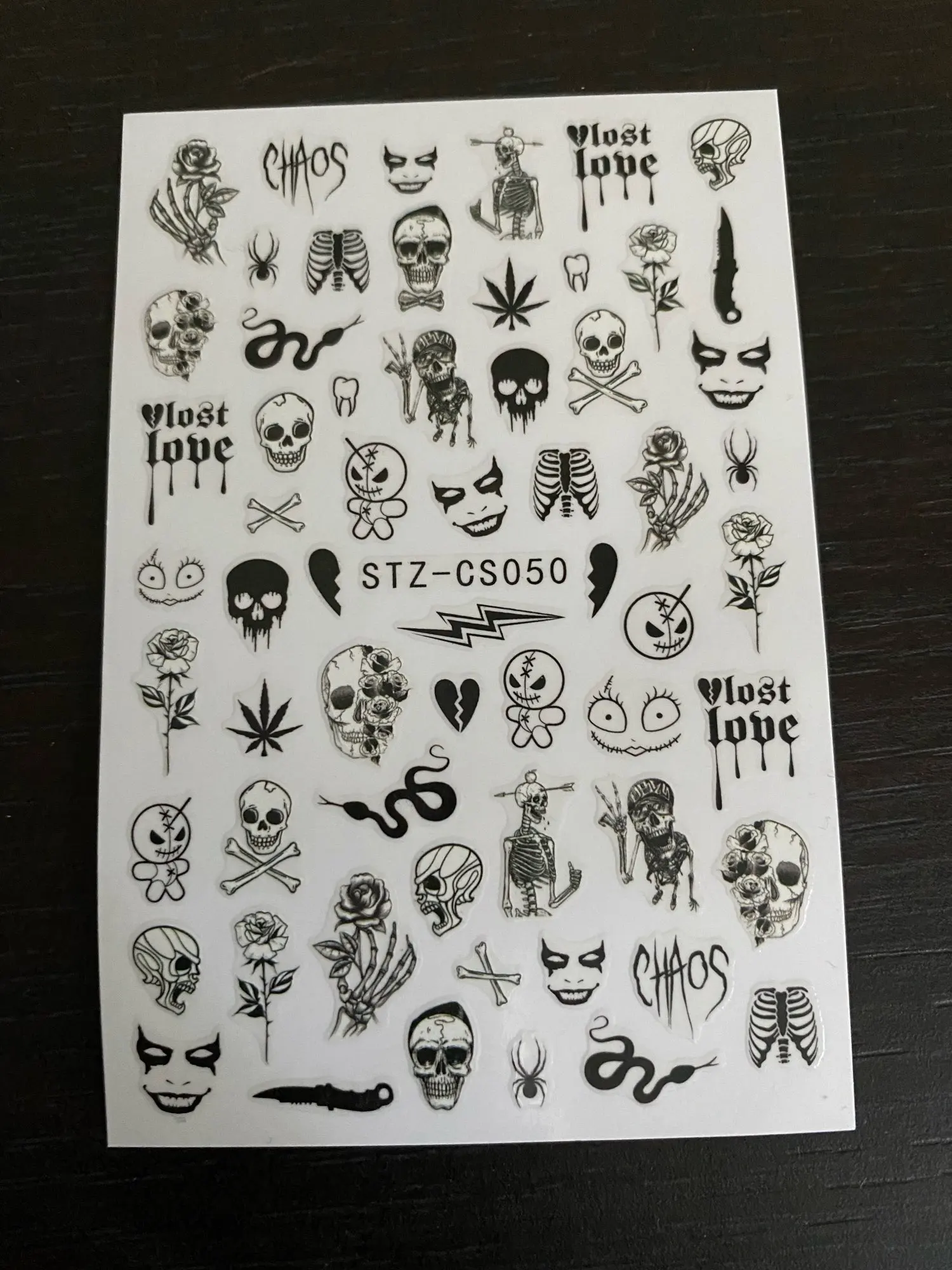 Хэллоуин наклейки для ногтей Череп Кость клоун Тыква слайдеры змея аниме мультфильм паук наклейки маникюр декорУзор: дизайн: Джокер/пеннивайз/Череп/кости/Призрак/тыква/кленовый листУпаковка: 1 шт. Набор наклеек для ногтейИнструкции по использованию: 1. Нанесите Базовое покрытие и подождите, пока оно полностью высохнет.2. Выберите базовый цвет, который вам нравится, и нанесите его на ногти, а затем подождите, пока он 90% высохнет.3. С помощью пинцета аккуратно снимите подготовленную наклейку поместите ее на ноготь и прижмите.4. Нанесите верхнее покрытие для идеального эффекта.