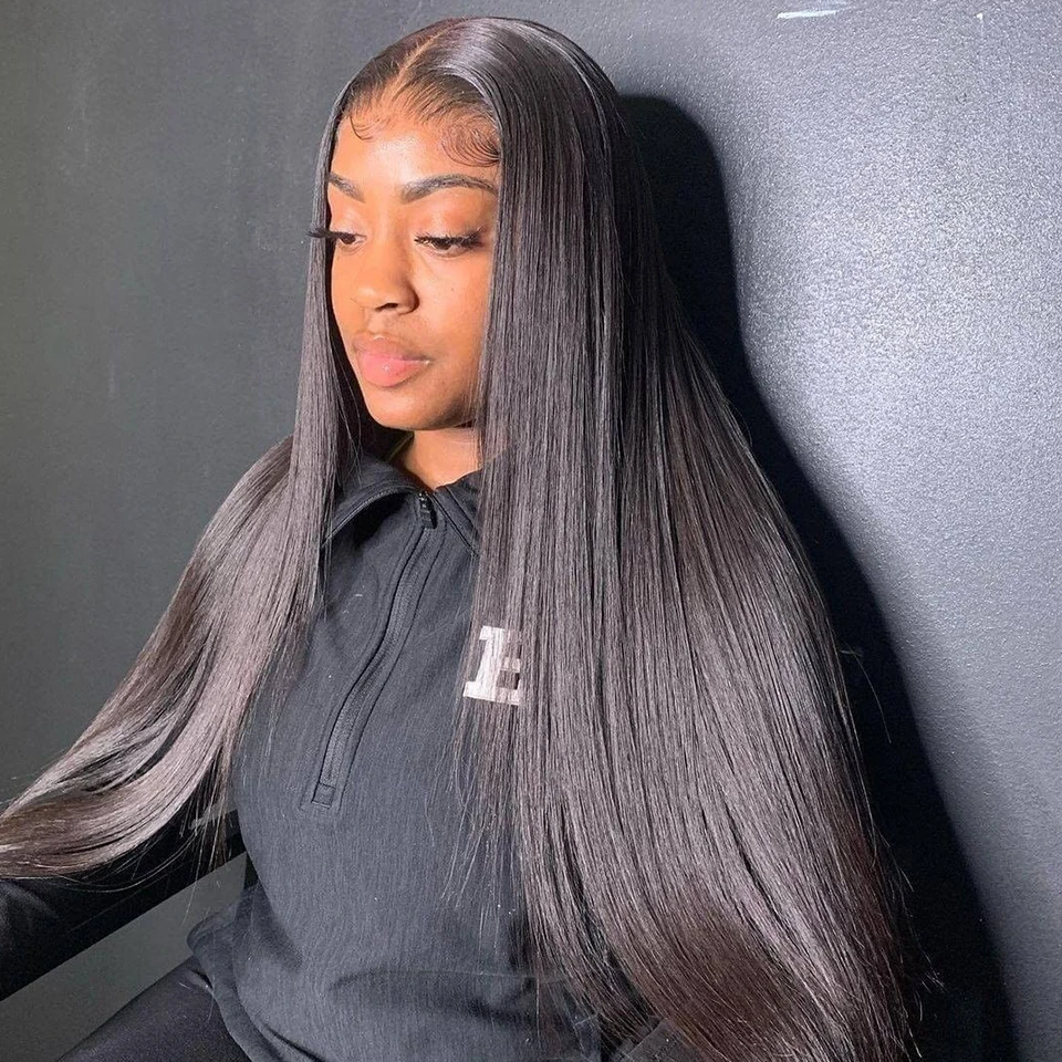 Парик женский прямой из натуральных волос на сетке, 13x4, 13x6, 30, 34, 40 дюймов