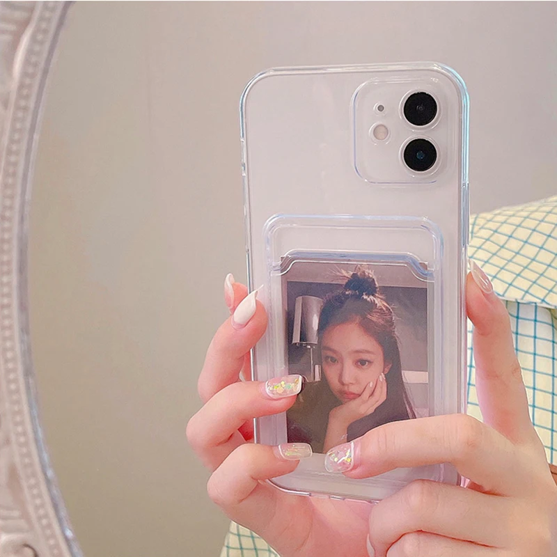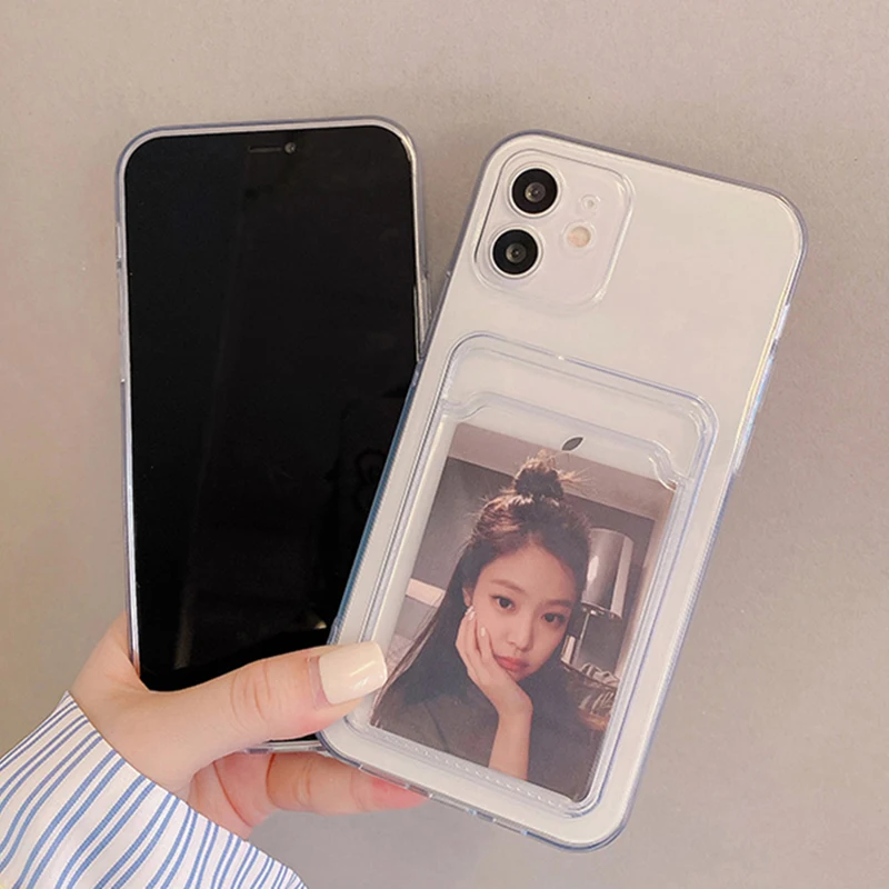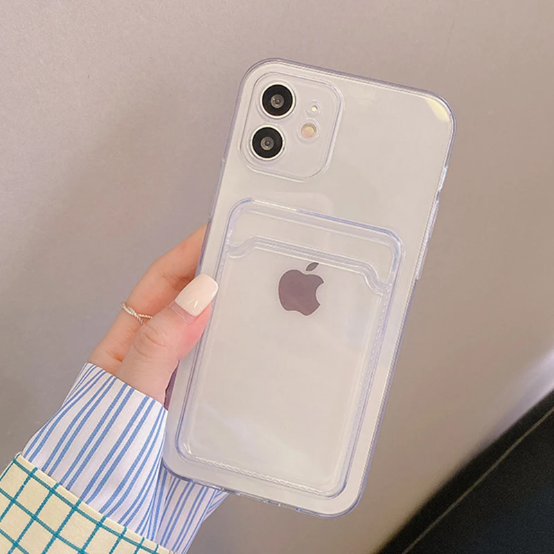 Роскошный прозрачный мягкий чехол для телефона с держателем карт для iPhone 11 12 Pro Max Mini X Xs XR 7 8 Plus SE2 2020, Силиконовый противоударный чехол