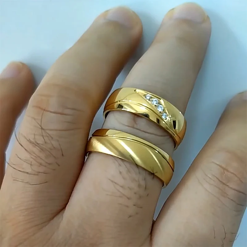 Обручальные кольца для мужчин и женщин, 1 пара, 18 карат, позолоченные, мужские, Т-образные, парные, большие, на палец, размер США от 7 до 15