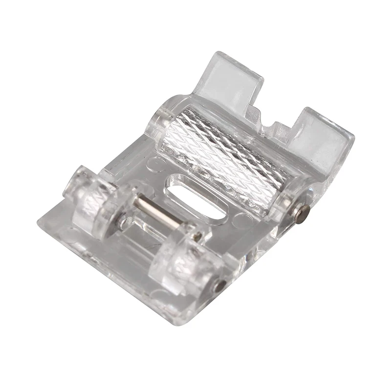 Стопа изготовлена из прозрачного пластика с металлическими роликами. Это помогает питать ткань и предотвращает поломку иглы, поломку резьбы,