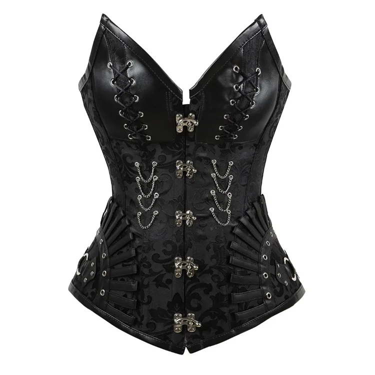 Готический корсет из искусственной кожи, 14 спиралей, со стальными ...