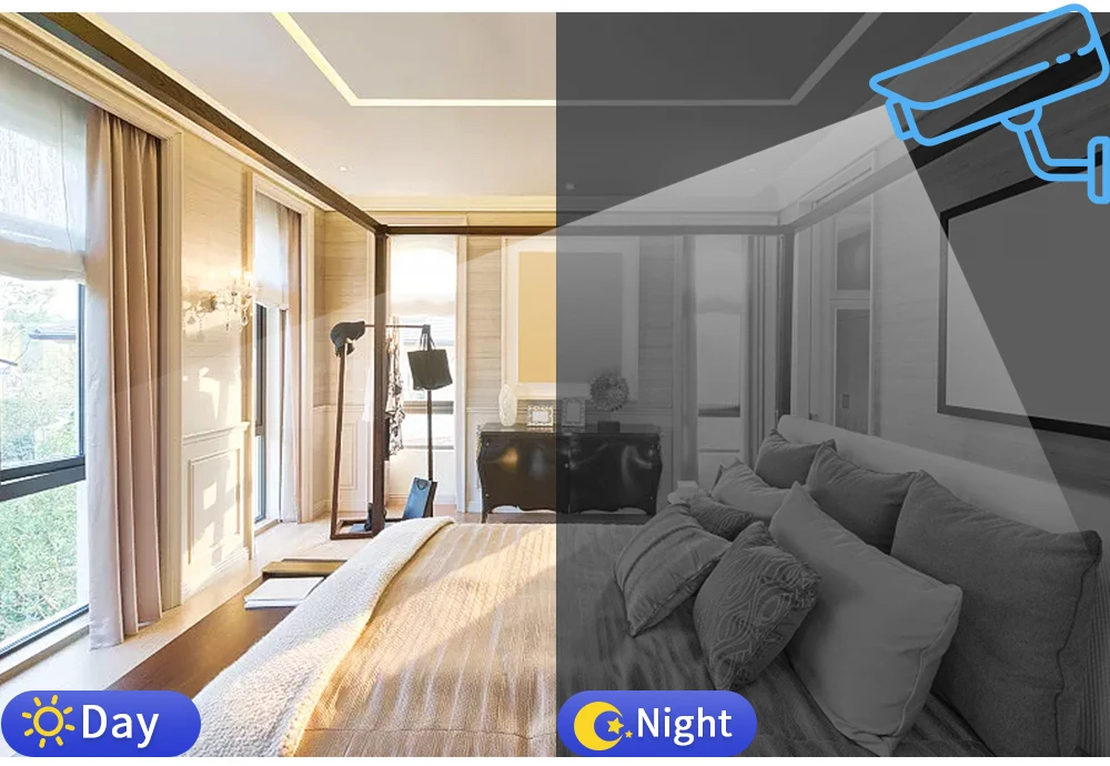 Умный фильтр, отсекающий ИК-спектр автоматически переключается между днем и ночью, цвет toreduce в дневное время и повышает яркость изображения в ночное время. Вы можете получить яркие кадры наблюдения от рассвета до темноты.