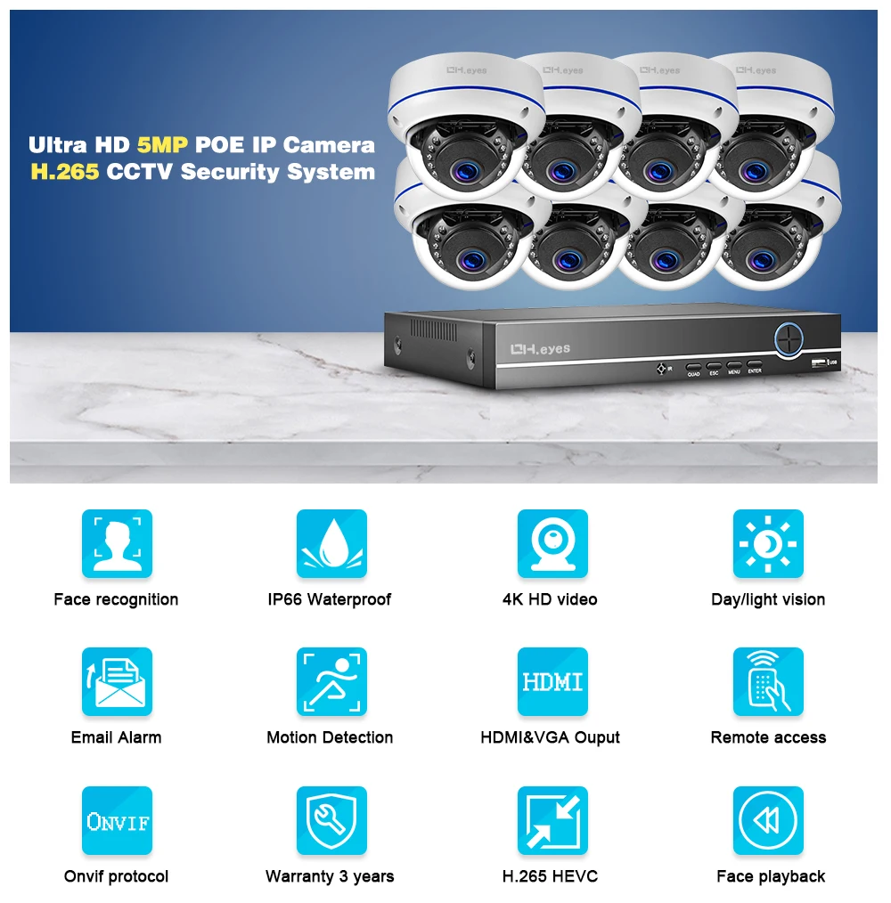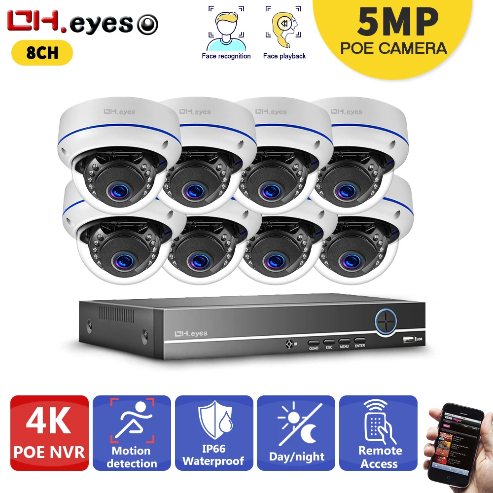 H.265 48 в POE 4K 8MP 8CH AI Обнаружение человека запись лица CCTV NVR аудио запись система 5MP 2592*1944P IP66 купольная POE IP камера комплект