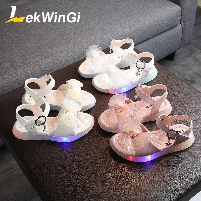 Детские сандалии для девочек, пляжные босоножки с подсветильник кой, размеры 22-31, летняя обувь с люминесцентной подошвой