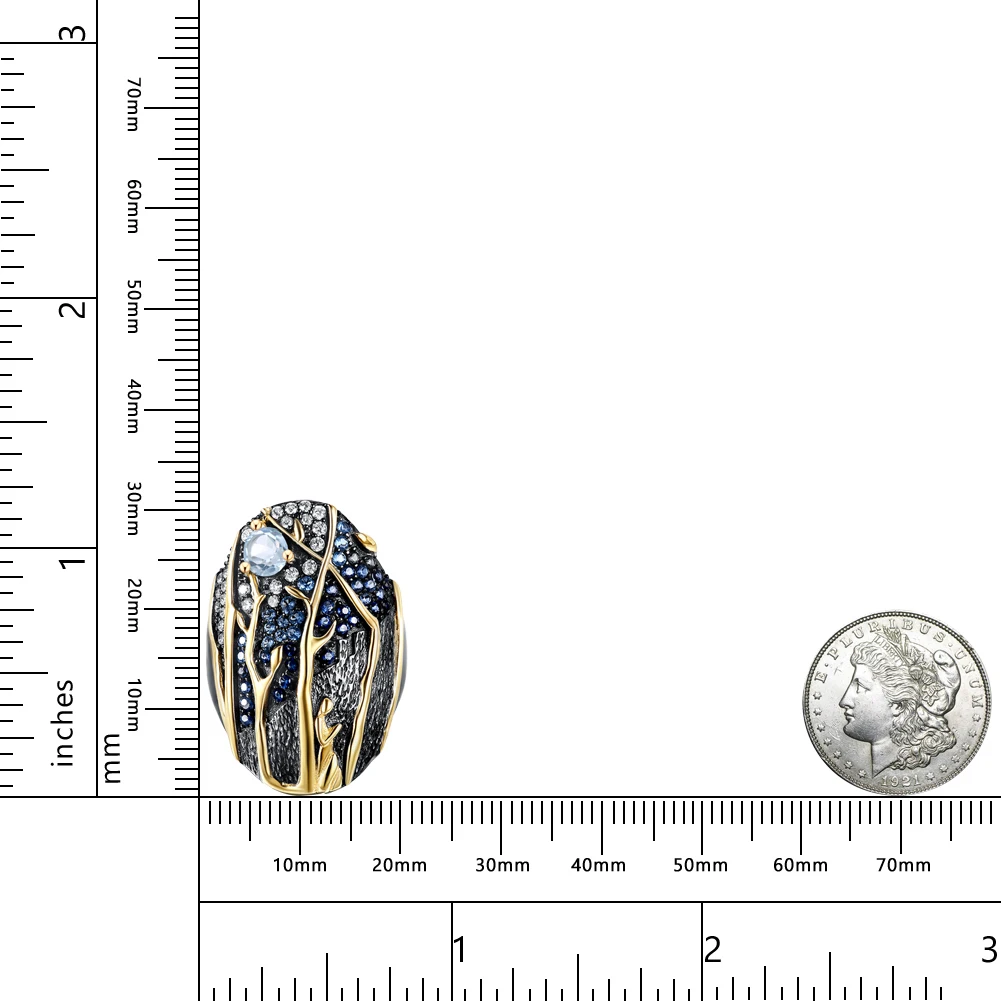 GEM'S BEAUTY 925 пробы Серебряное 14K Золотое кольцо с наполнителем...