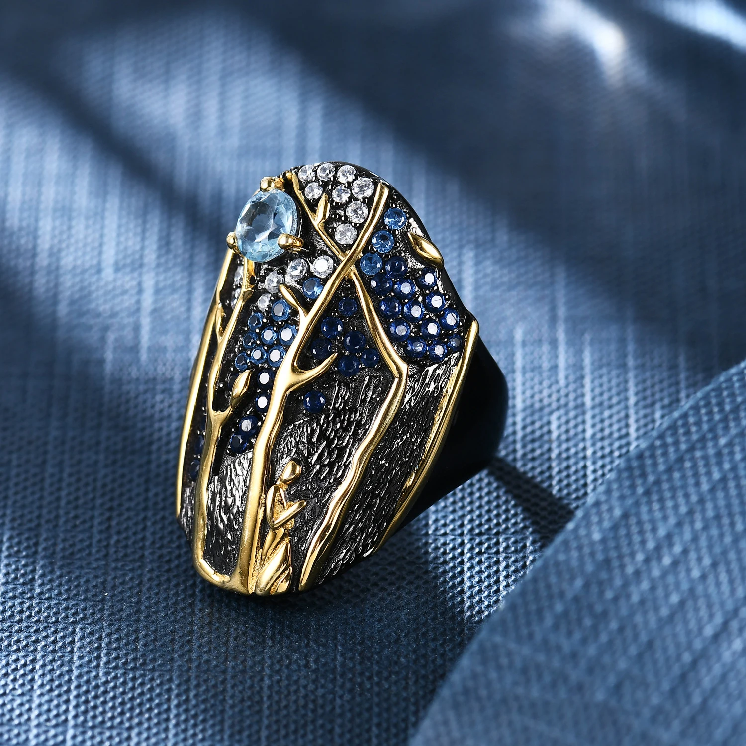 Кольцо женское из серебра 925 пробы, с голубым топазом