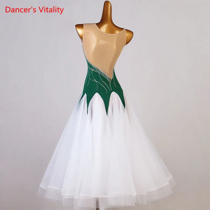 Платье для современных танцев, сетчатая длинная юбка со стразами, одежда для выступлений, одежда на заказ для взрослых, детей, для вальса, соревнований