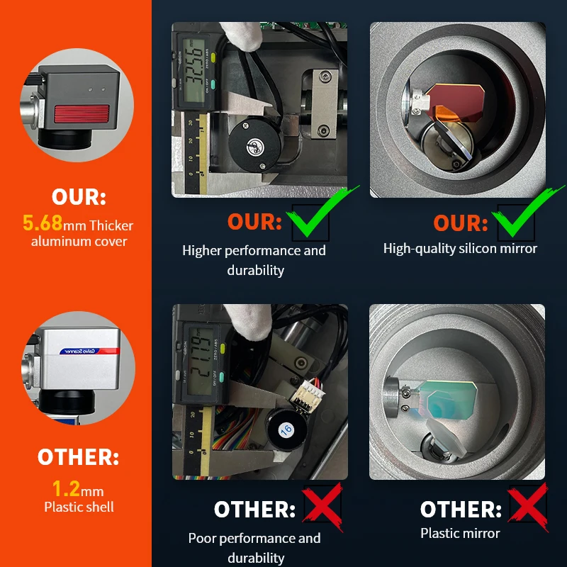 Цифровая гальванометр сканирующая головка быстрая скорость <9000 мм/сек. с Focuslaser бренд выбрал высокое сканирование и точность. Мы также установили лист теплопередачи (красный), это позволит как можно скорее выпустить тепло. Таким образом, убедитесь, что внутренняя температура головки сканера охлаждается быстрее, чтобы получить лучшую производительность.