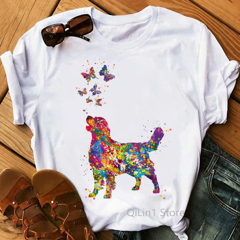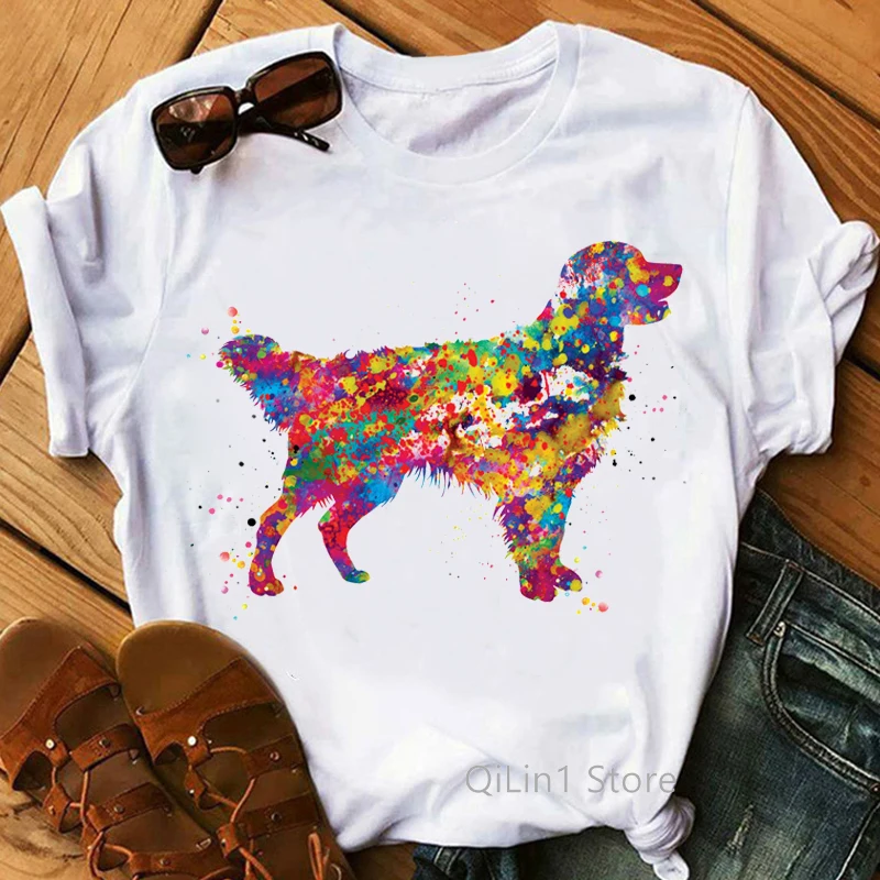 Лидер продаж 2022, футболка для женщин, акварельная футболка с изображением золотистого ретриверачихуахуа, футболка с принтом животных, Женская футболка для домашних питомцев, женские топы