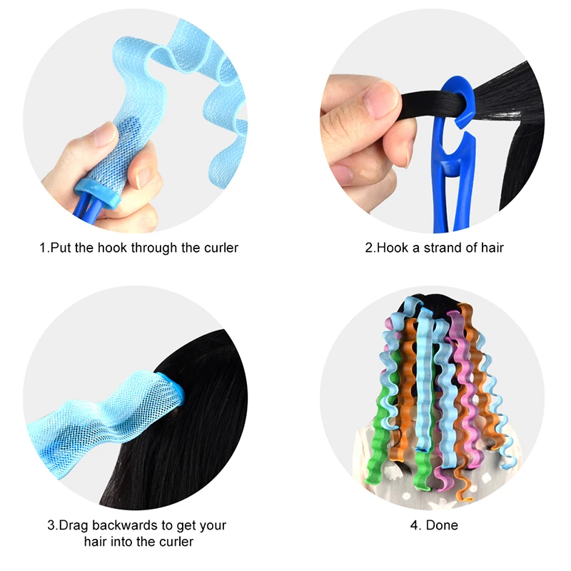 -- Эти бигуди могут легко свернуть и скрутить волосы и легко создать уникальный модный стиль.-Волосы могут быть стилизованы естественным образом без химических веществ.-- Легко использовать, чтобы быстро и эффективно раскатать желаемую прическу, создавая смесь локонов и волн-- Может быть повторно использован и очищен, прочный.