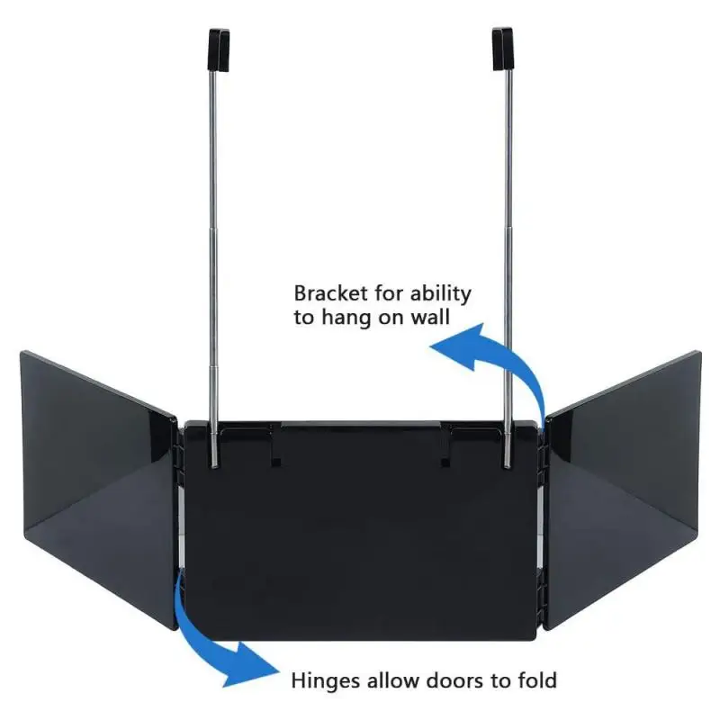 Выдвижное подвесное Трёхстороннее складное зеркало для макияжа, Свободно регулируемая высота, бритье и Парикмахерское зеркало, трехслойное зеркало