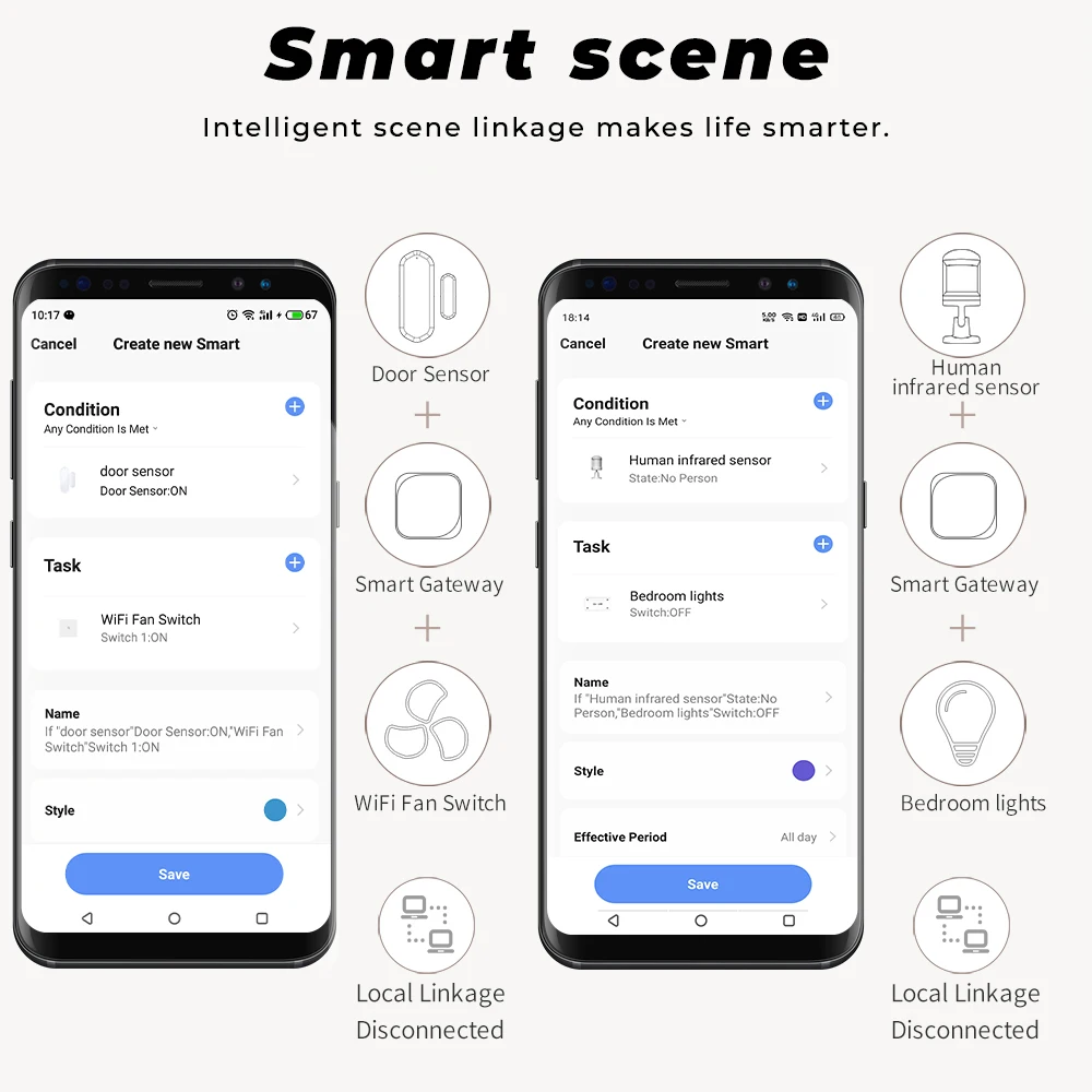 [Следите за вашей домашней безопасностью]-Обнаружение открывания и закрытия дверей и окон в вашем доме и своевременное Отправка уведомлений на ваш смартфон. Требуется концентратор TUYA ZigBee.[Связь и умная сцена]-Этот умный датчик окна двери может соединяться с другими устройствами Tuya WiFi и ZigBee. Например, вы можете установить переключатель WiFi или ZigBee, чтобы включить светильник, когда дверь открывается в приложении Smart Life. Создание собственной сцены для включения/выключения бытовых приборов в режиме выезда, режим дома, температура, влажность или другие условия.[Широкое использование]-Этот датчик двери может использоваться не только для дверей или окон, но и для ящиков, гаражных ворот и т. д.[История записей]-Вы можете просматривать записи открытия и закрытия дверей и окон в вашем доме с помощью приложения Smart Life.