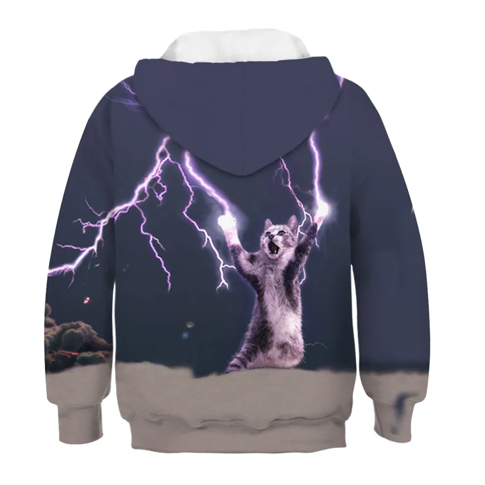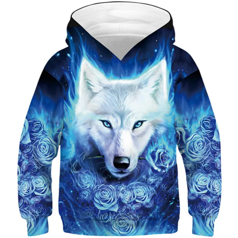 Детские толстовки с капюшоном, кофты с принтом синих роз, огня, черепа, волка, галактики, животных, молнии, кота, детские пуловеры с 3D рисунком, кофты для мальчиков и девочек