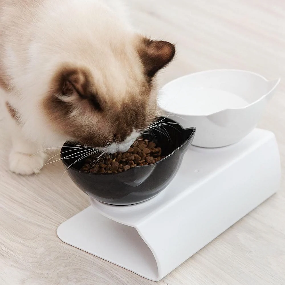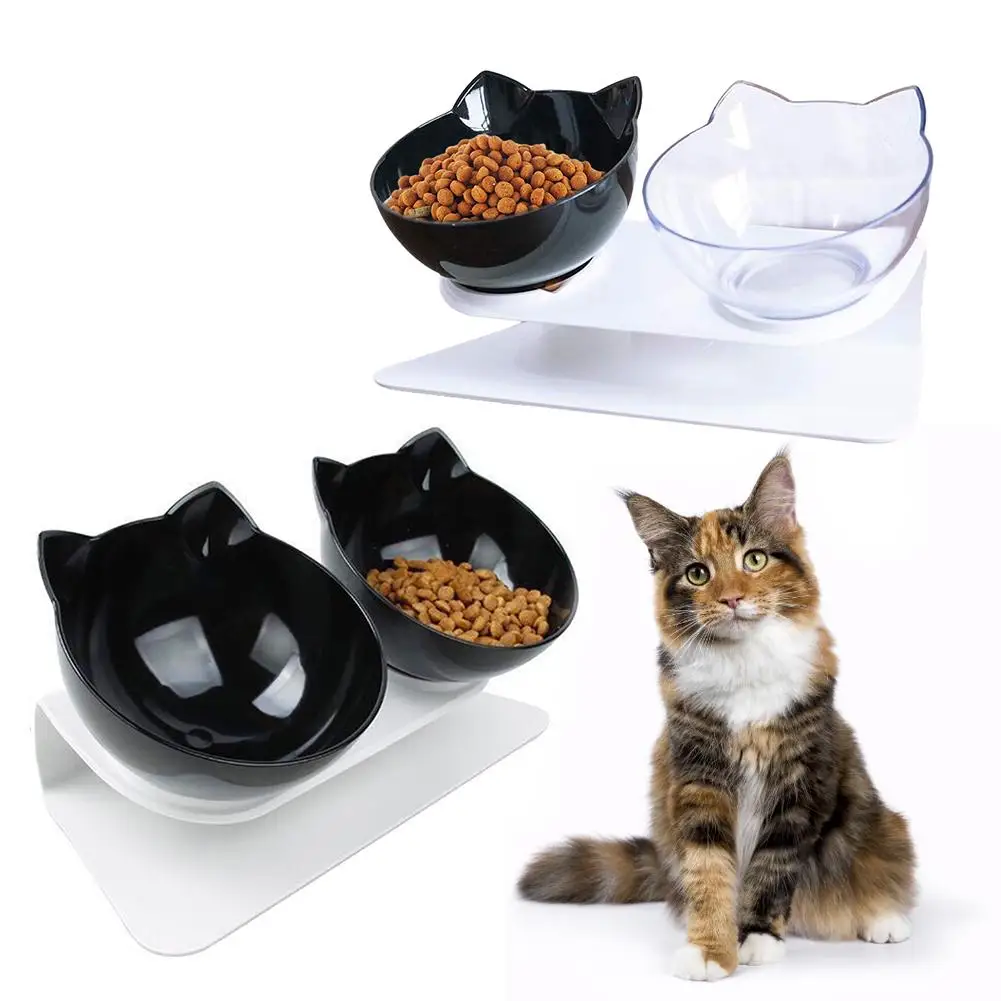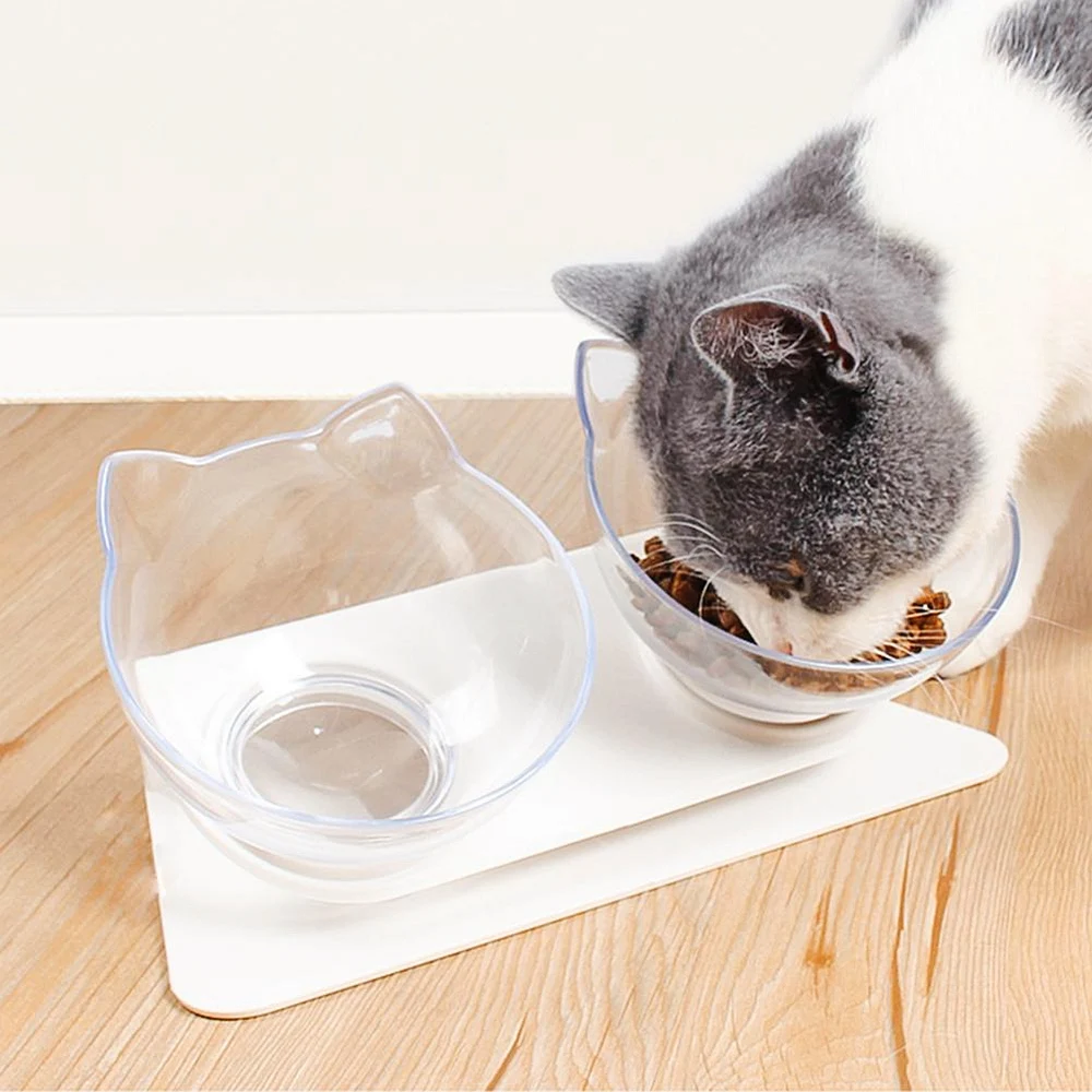Двойная миска для кошек, собачья миска прозрачный материал, нескользящая миска для корма с защитой шеи, прозрачные принадлежности для кошек