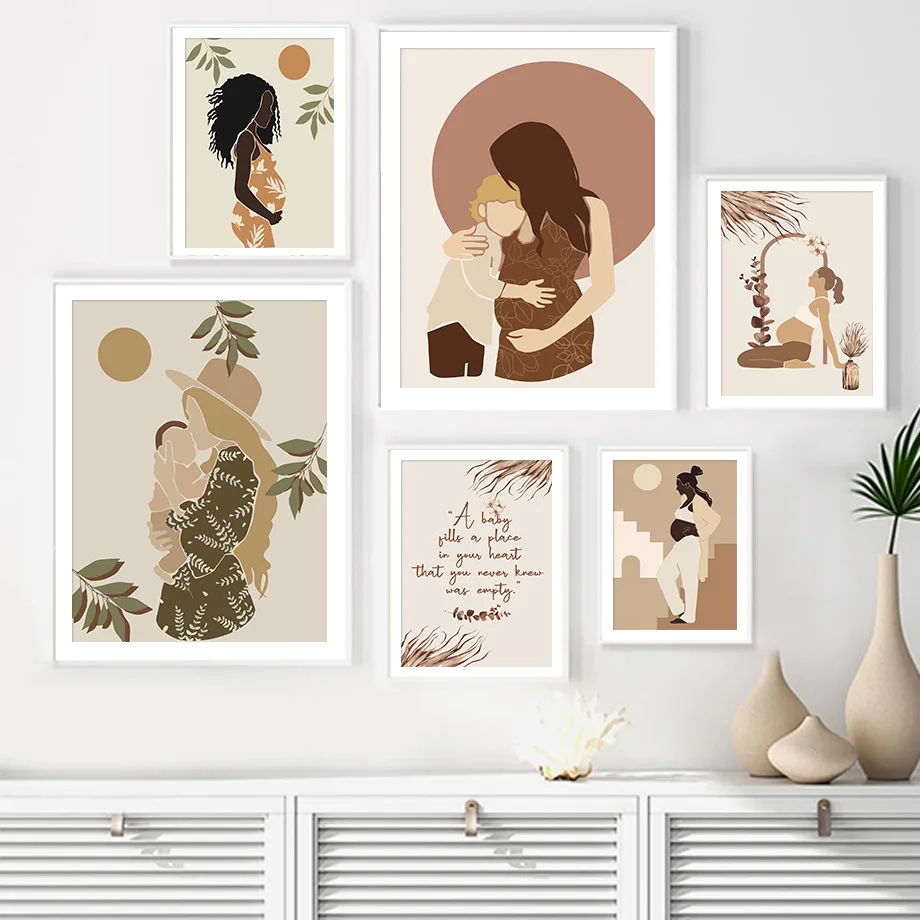 Винтажная Картина на холсте в стиле бохо с изображением беременных и малышей и солнца, скандинавские плакаты и принты, настенные картины, украшение для детской комнаты