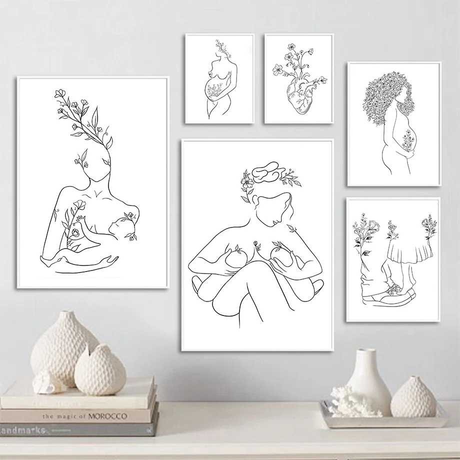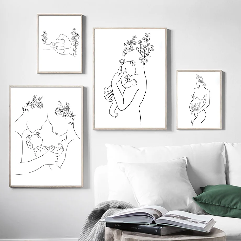 Винтажная семейная Картина на холсте с надписью Love Mom Baby Hand Line, скандинавские постеры и принты для детской комнаты, декор для детской комнаты