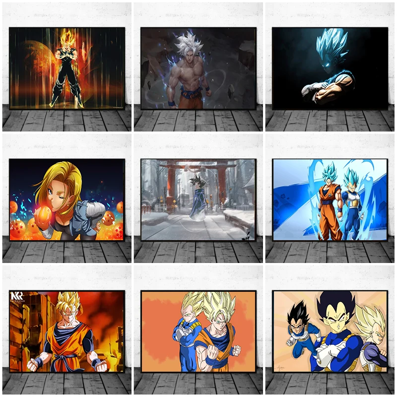 Плакат в стиле японского аниме, мультфильм Dragon Ball, холст, наст...
