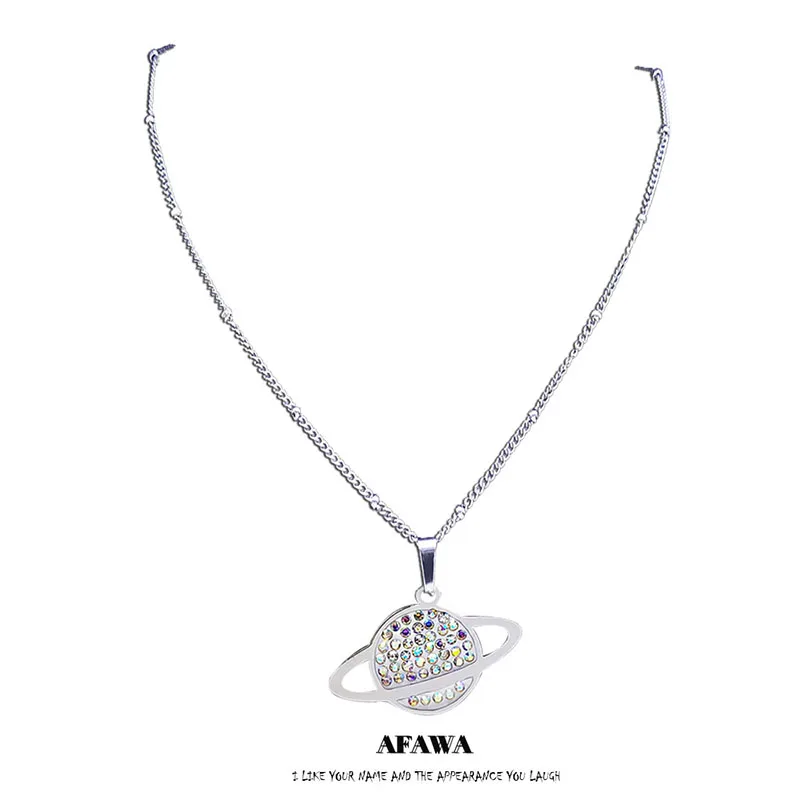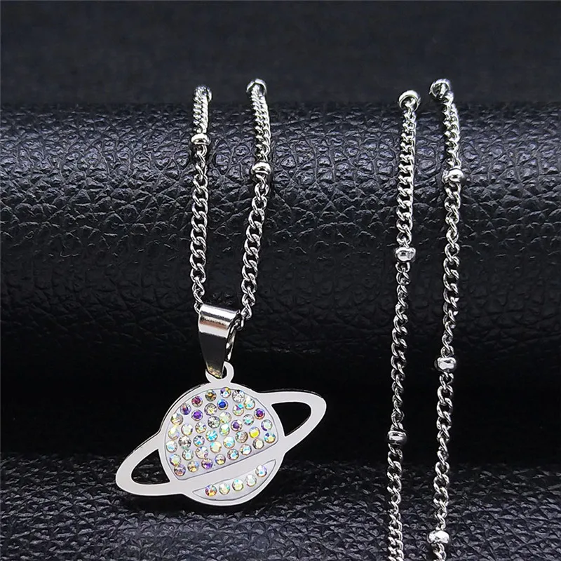 Из нержавеющей стали белый кристалл Вселенная ожерелья с изображением планет очарование женщин Серебряный цвет маленькие ожерелья ювелирные изделия cadena