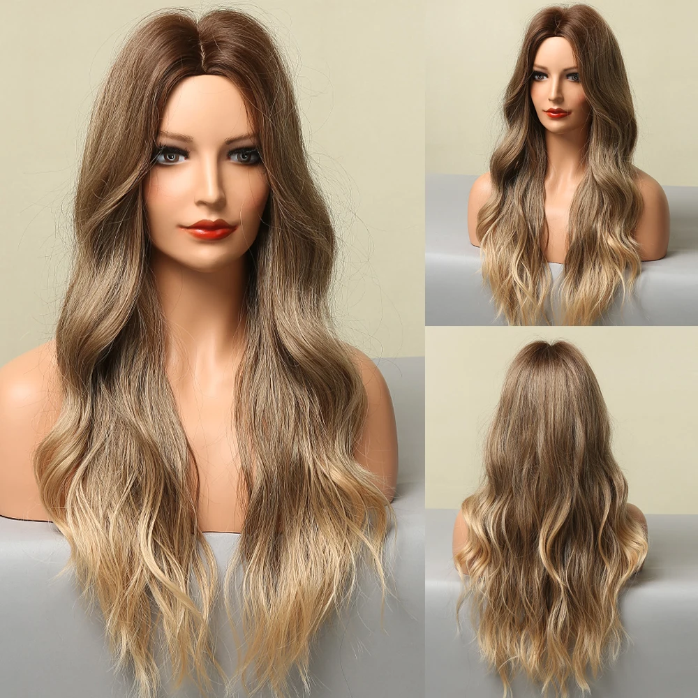 GEMMA длинные волнистые синтетические парики для женщин Омбре коричневые хайлайтеры блонд Косплей ежедневный парик для вечеринки волосы из высокотемпературного волокна