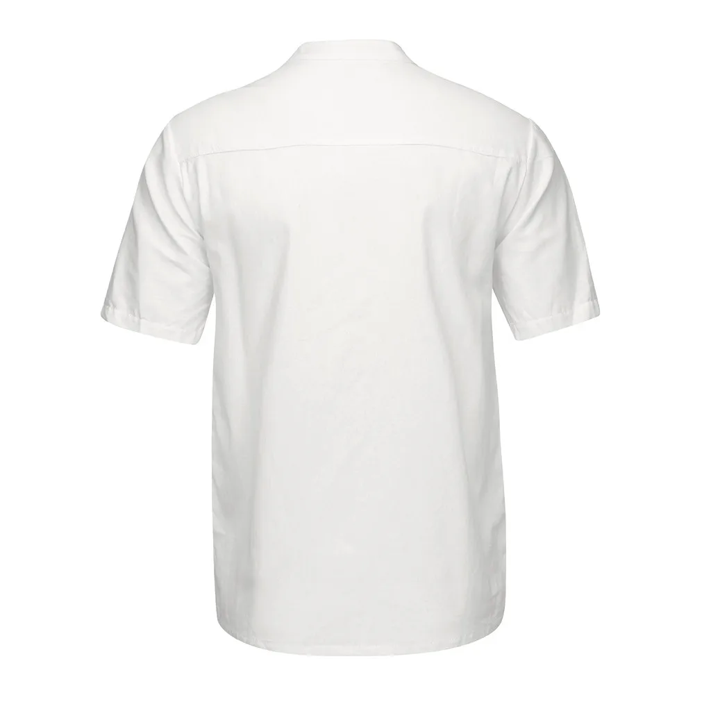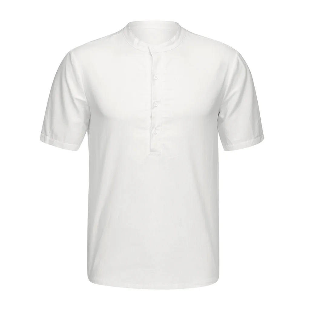 Рубашка Мужская льняная с коротким рукавом, дышащая мешковатая Повседневная сорочка, приталенный силуэт, однотонный хлопковый пуловер, топ, блуза