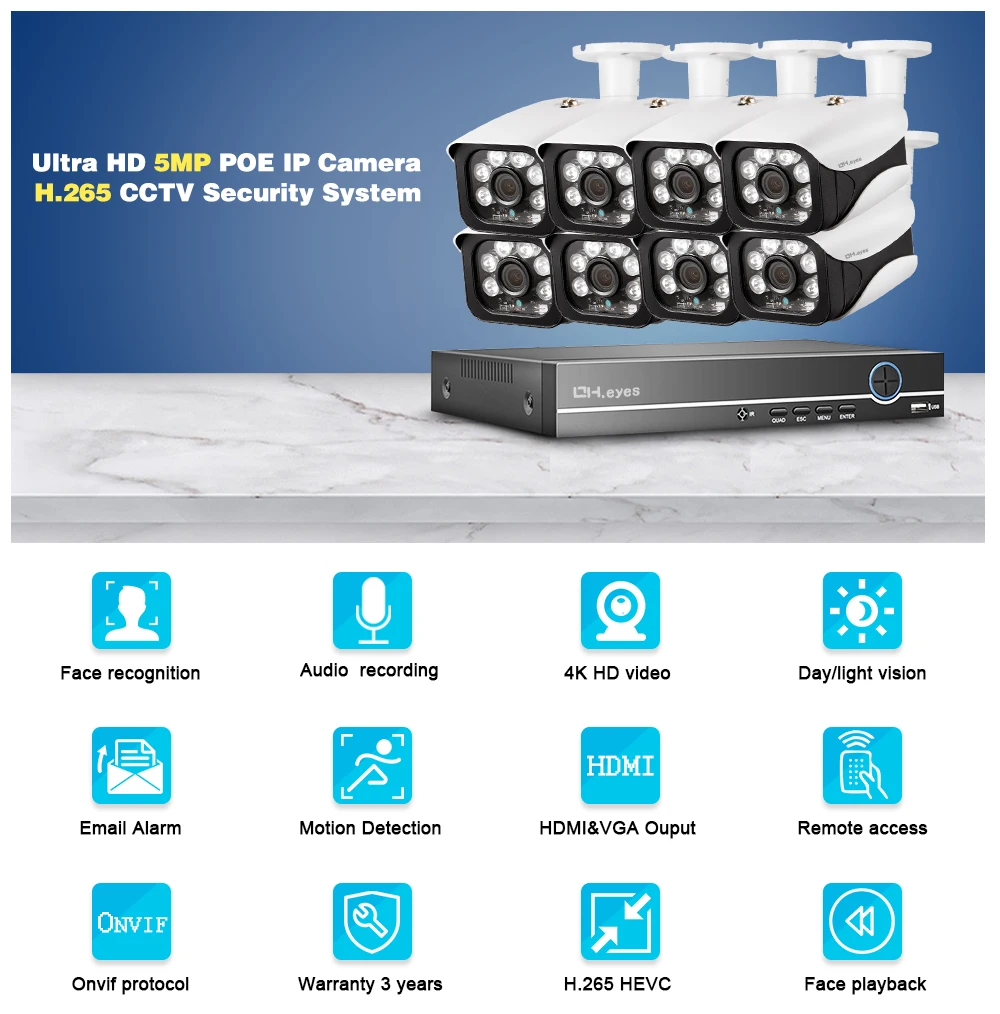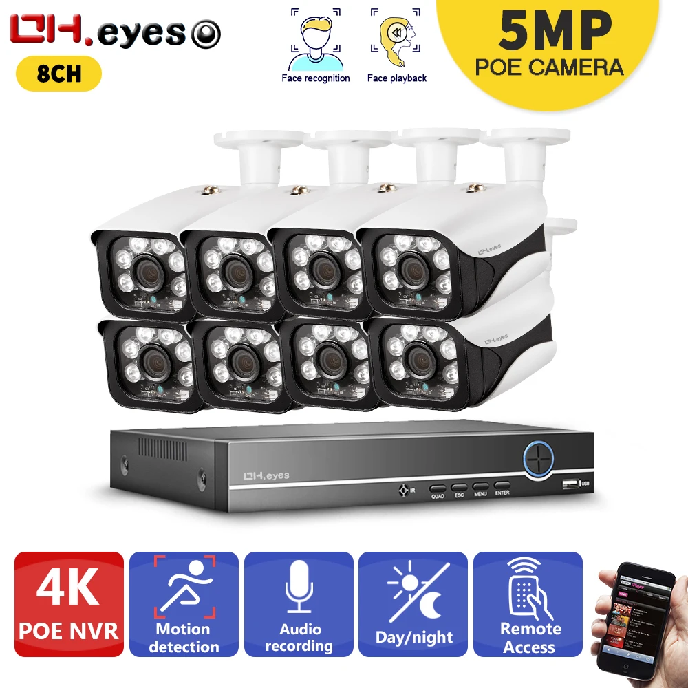 Система видеонаблюдения OH.Eyes, 8 каналов, 4K, Ultra HD, POE, 8 Мп, H.265 + сетевой видеорегистратор с 8 камерами 5 МП, комплект видеонаблюдения с защитой от непогоды