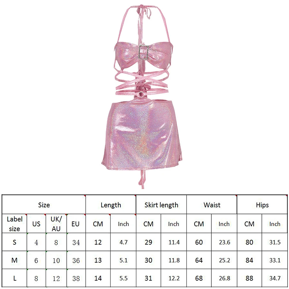 YiYiMiYu 2021 Блестящий розовый комплект из двух предметов волшебный пикантный короткий топ мини-юбка летняя одежда пикантный клубный праздничный наряд