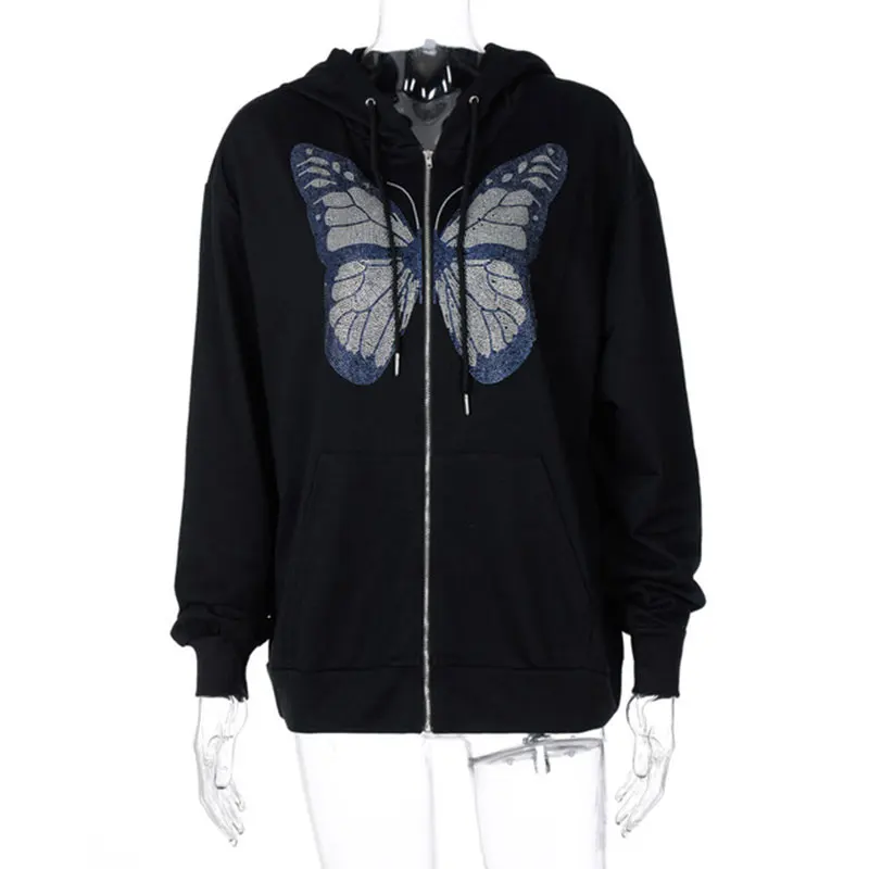 Женские толстовки стразы на молнии с рисунком бабочки в стиле E-gir...
