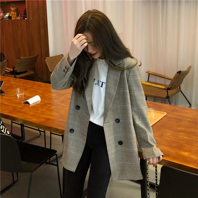 Женский офисный Блейзер, двубортный блейзер в клетку с английским в...