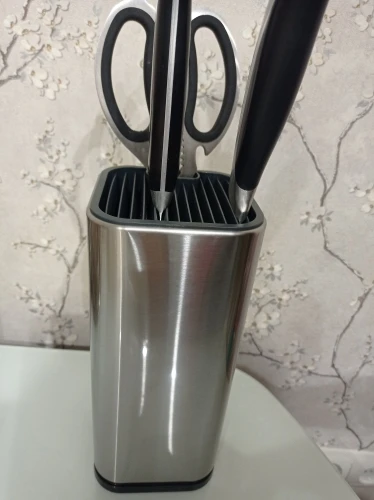 замечательная подставка для ножей и ножниц.топорик не вмещается,к сожалению.качество супер,упаковка хорошая,все дошло в идеальном состоянии.до Урала 11 дней. спасибо большое.кому подходит под интерьер однозначно рекомендую к покупке. вам 5 звёзд и удачи в бизнесе.