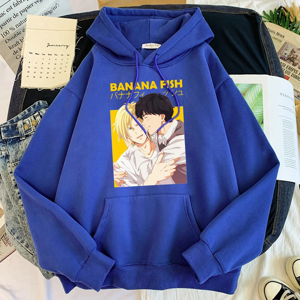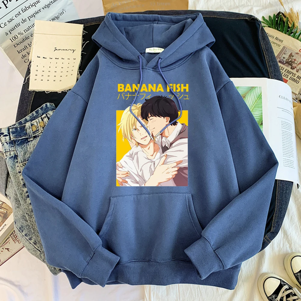 Толстовка с капюшоном в стиле аниме с бананом и рыбой, пеплом и рысью, мужская свободная винтажная толстовка в стиле хип-хоп, уличная одежда, пуловер для мужчин, теплый свободный спортивный костюм, мужской