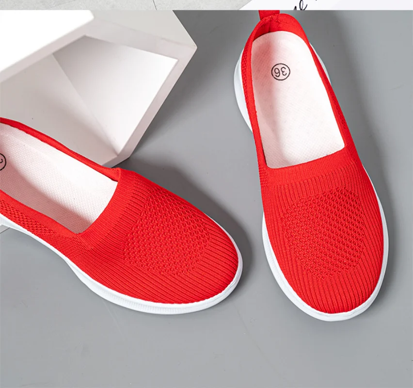 2021 Летняя женская обувь, вязаные женские кроссовки, легкая спортивная обувь на плоской подошве, размера плюс, лоферы