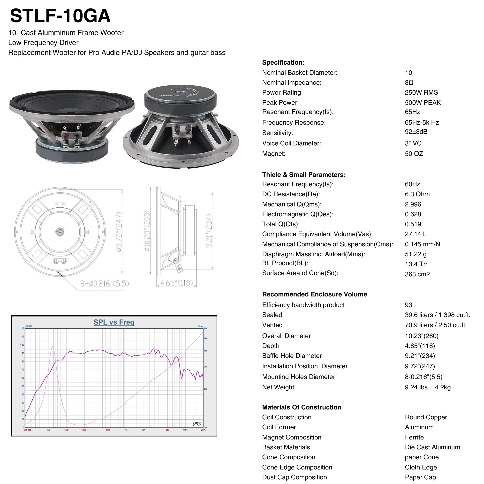 Sound Town 2-Pack 10 "250 Вт литой алюминиевый каркас Woofer W/3" звуковая катушка, замена Woofer для PA/DJ динамика, бас-гитары шкафы (STLF-10GA-PAIR)