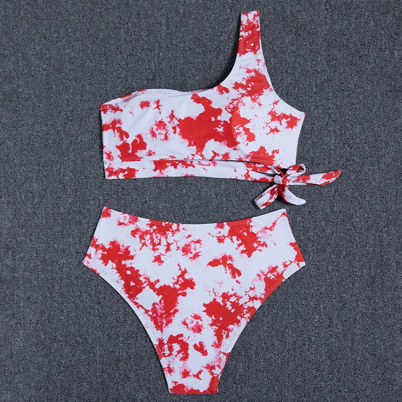 Красный сексуальный комплект бикини с высокой талией, женский купал...