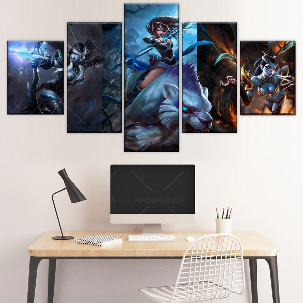 Декор для дома, настенные картины на холсте, 5 шт., дота 2, картины с играми, Hd-принты, современный постер для спальни, модульная рамка