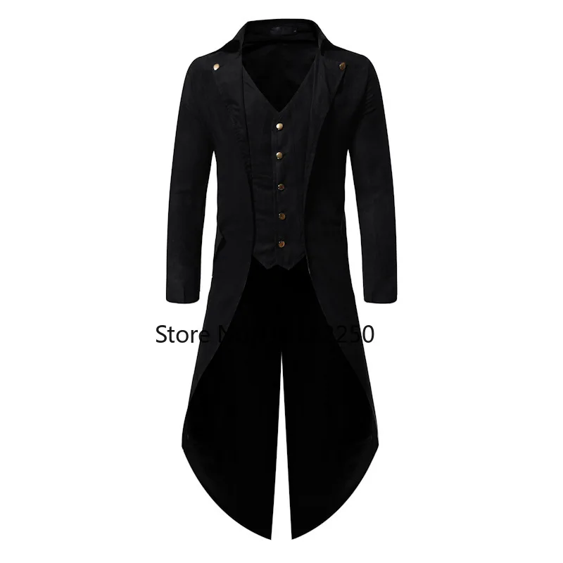Мужское черное пальто в стиле стимпанк, Средневековая готическая куртка, мужское официальное пальто в стиле пиратского Викинга, эпохи Возрождения, смокинг, мужской костюм