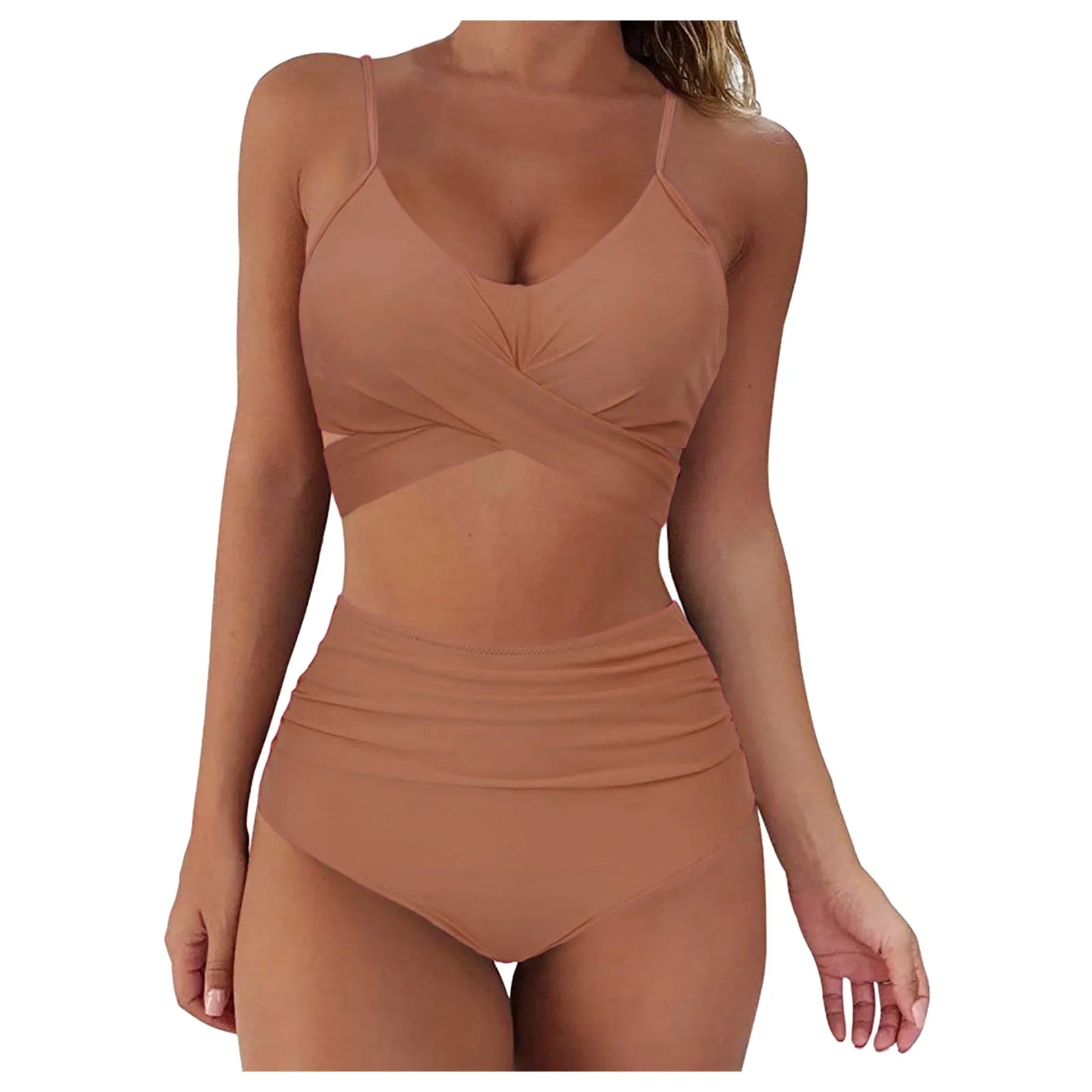 Женский купальный костюм размера плюс 2021, сексуальный женский комплект бикини с высокой талией, купальник из двух частей, танкини, женское бикини